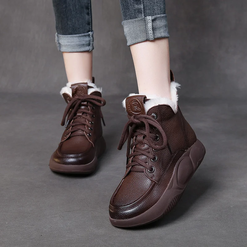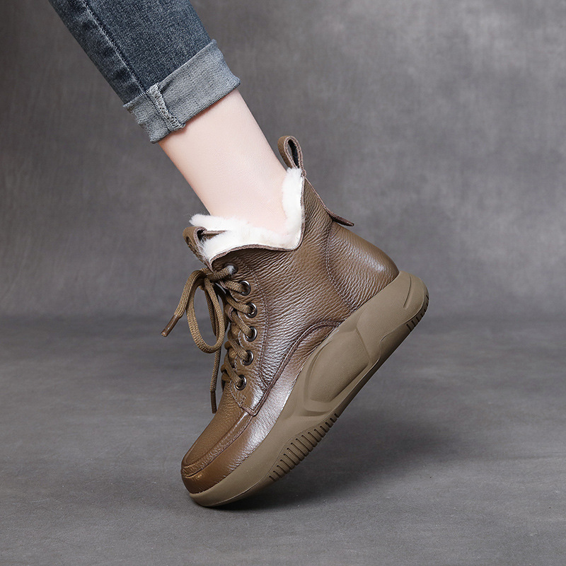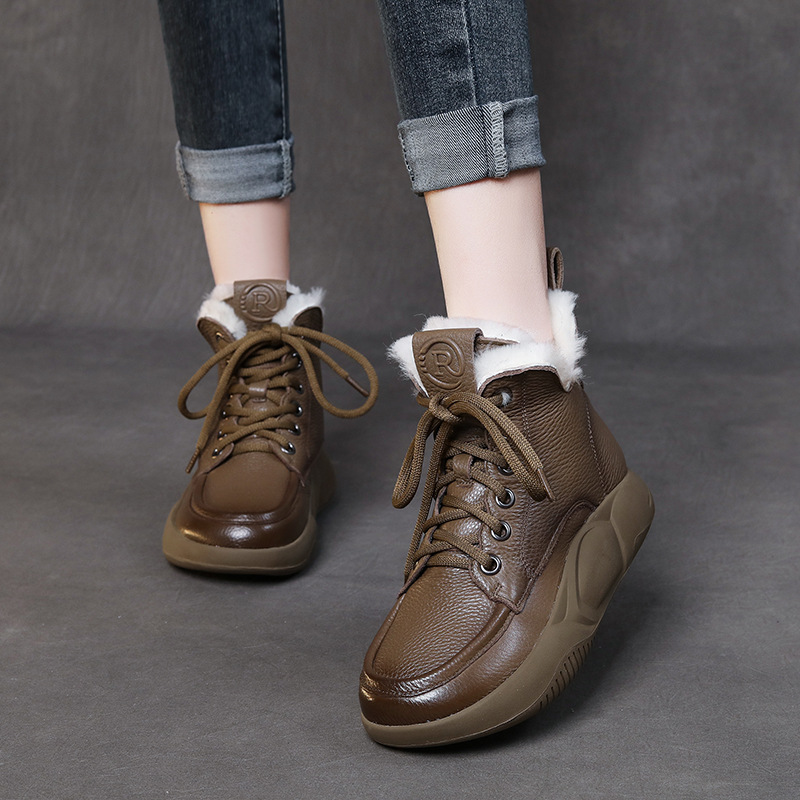 Yyvonne Leather Short Boots Women Winter Flat Bottom With Round Head Real Snow Boots Retro Martin Boots Retro Style