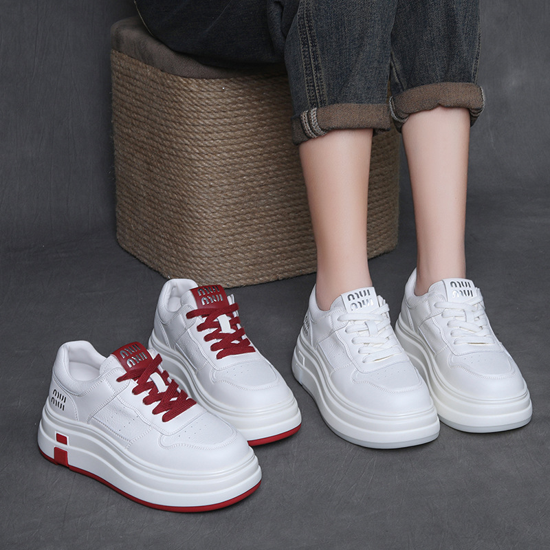 Yyvonne Leather Thick-Soled Little White Shoe Woman 2025 Spring New Set Casual Fashion Board Shoes Comfortable And Light Cake Shoes