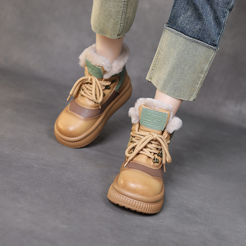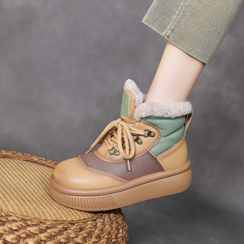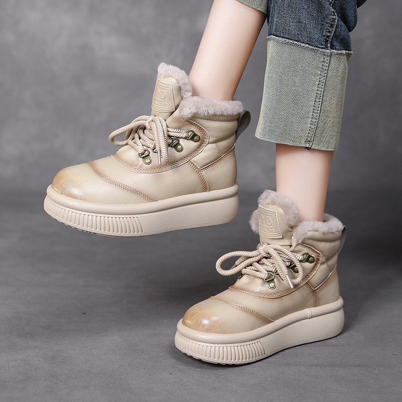 Yyvonne Leisure Snow Boots Women Double Zipper Wool Short Boots Warm Plus Velvet Martin Boots Thick Cotton Boots