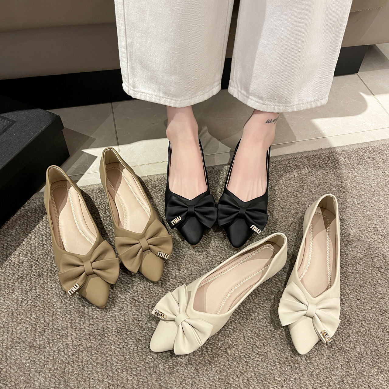 Yyvonne Mouth Single Shoes Women 2025 Spring And Summer New Sharp Head Flat Evening Wind Bows Lazy One Foot Pedal Bean Shoes