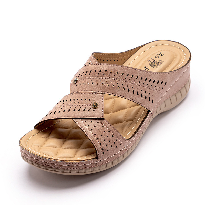 Yyvonne New Cool Drag Female Explosion Slope With Lady Large-Size Slippers Mother Shoes Roman Style Comfortable