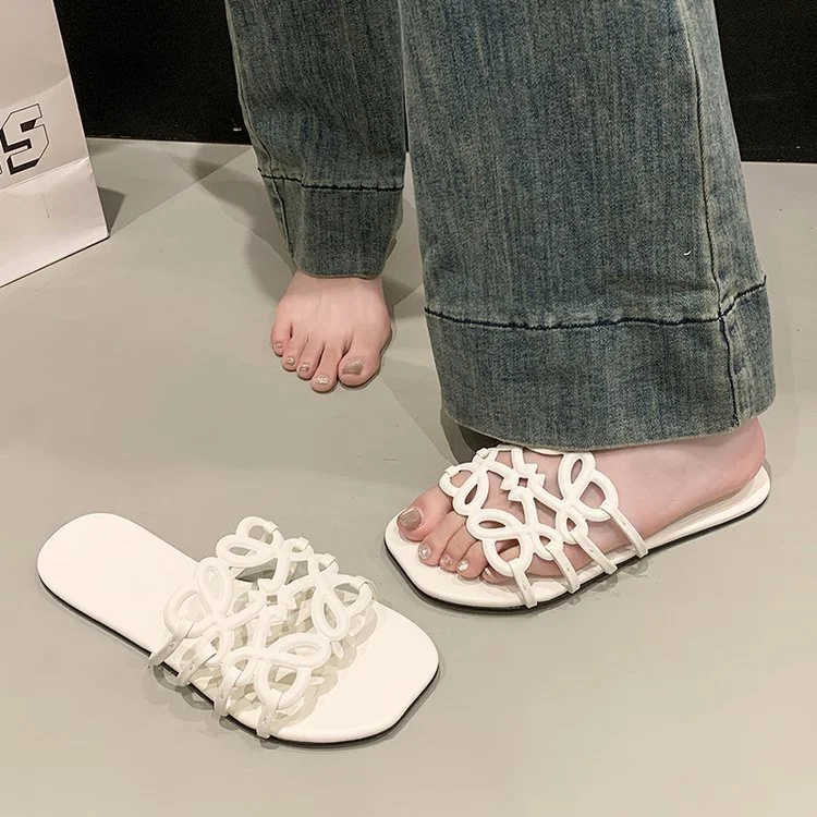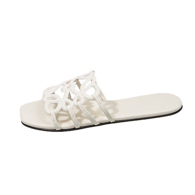 Yyvonne New Fashion Type Small Simple Hollow Cool Slippers Outside Wearing Flat Bottom Side Casual Beach Shoes