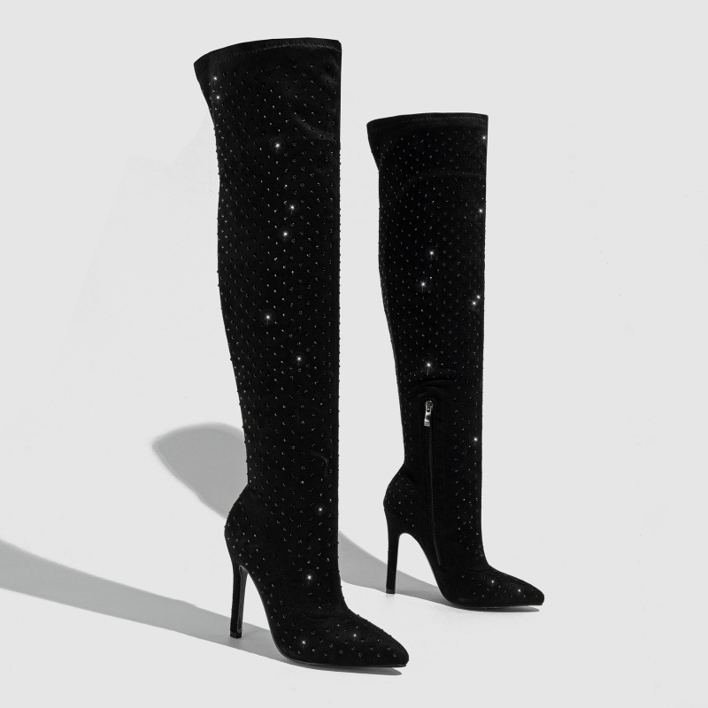 Yyvonne New Fashion Water Drilled Over Knee Boots Sexy Tip Side Zipper Comfortable Large Code