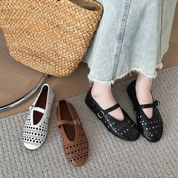 Yyvonne New French Hollow Ballet Shoes Flats With A Shallow Mouth Mary Jane Shoes Women's Niche Design Single Shoes