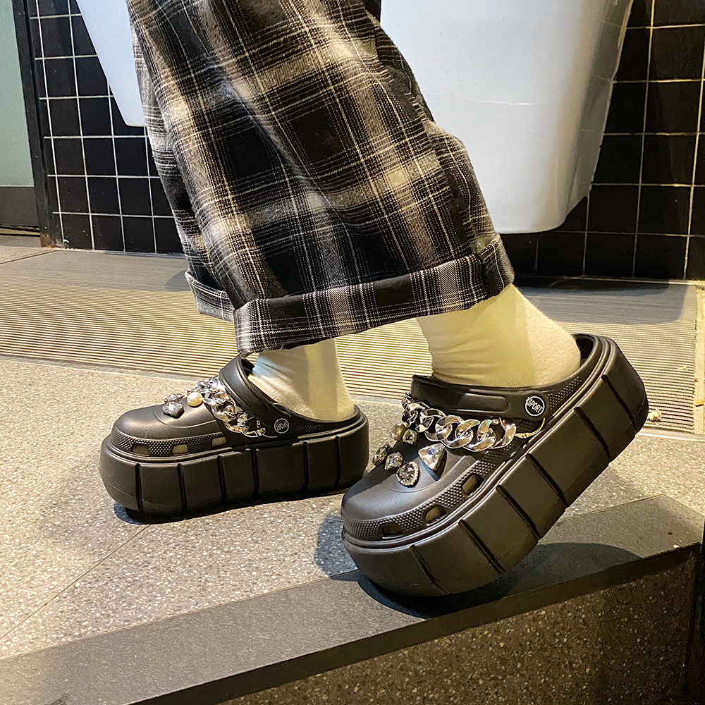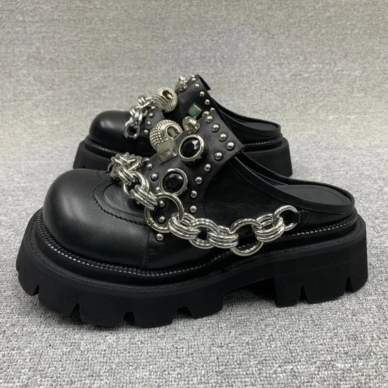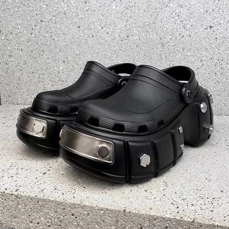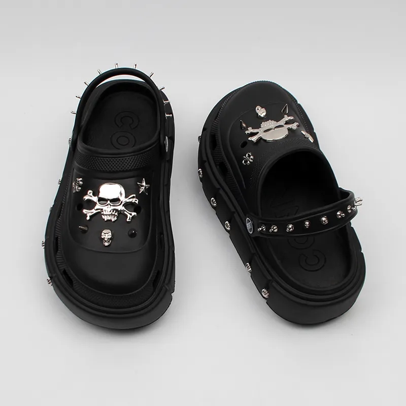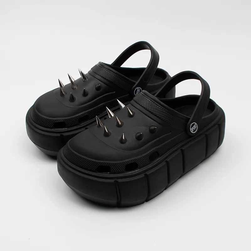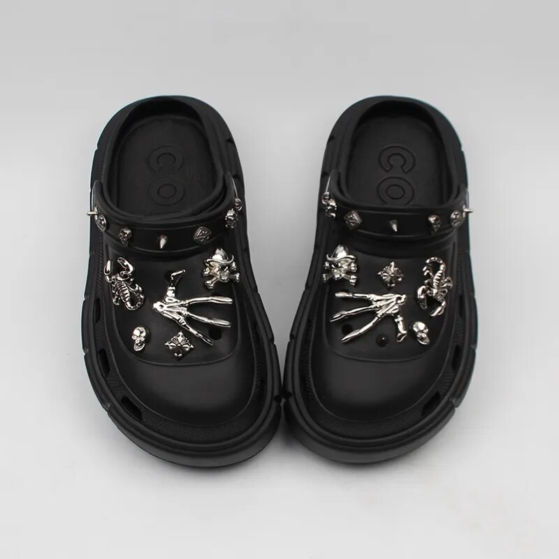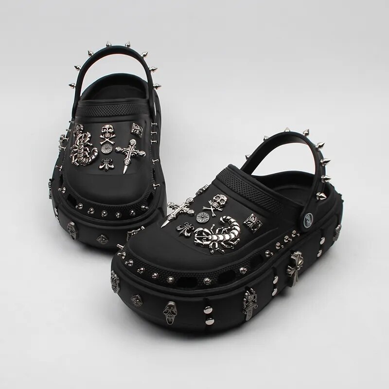 Yyvonne NEW punk metal rivets Sandals Women Slippers Platform Sandals Outdoor Clogs Thick Street Beach Slippers Flip Flops Garden Shoes