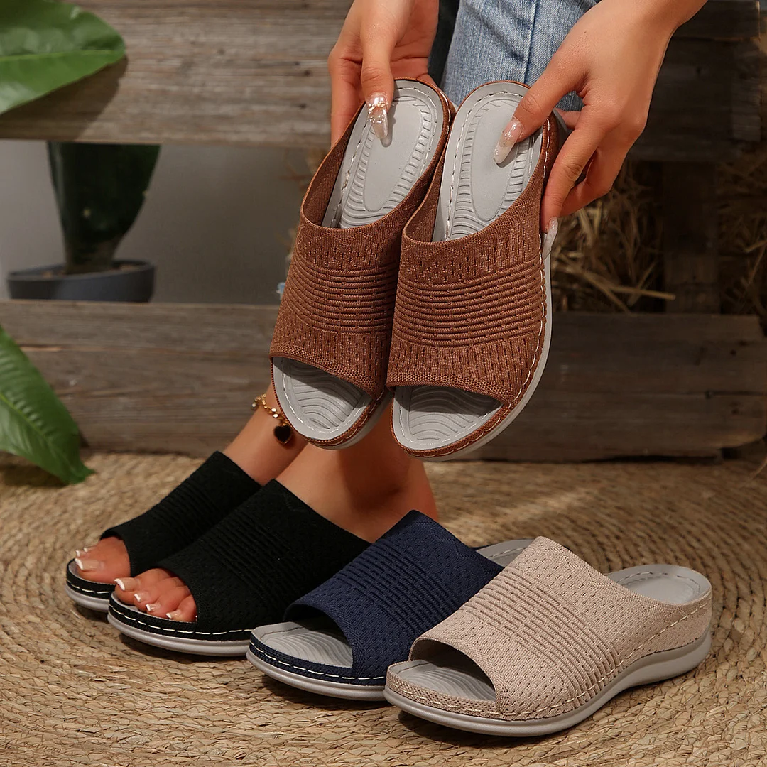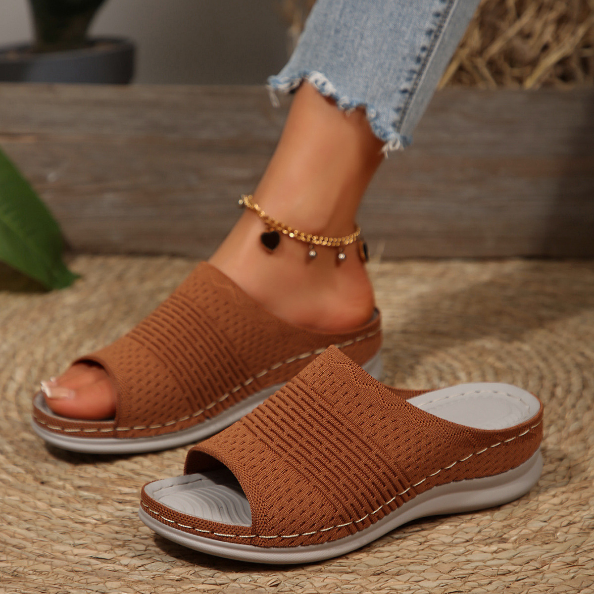 Yyvonne New Slope And Casual Round Head Composite Flying Woven Cool Slippers Type Sandals Women Spring