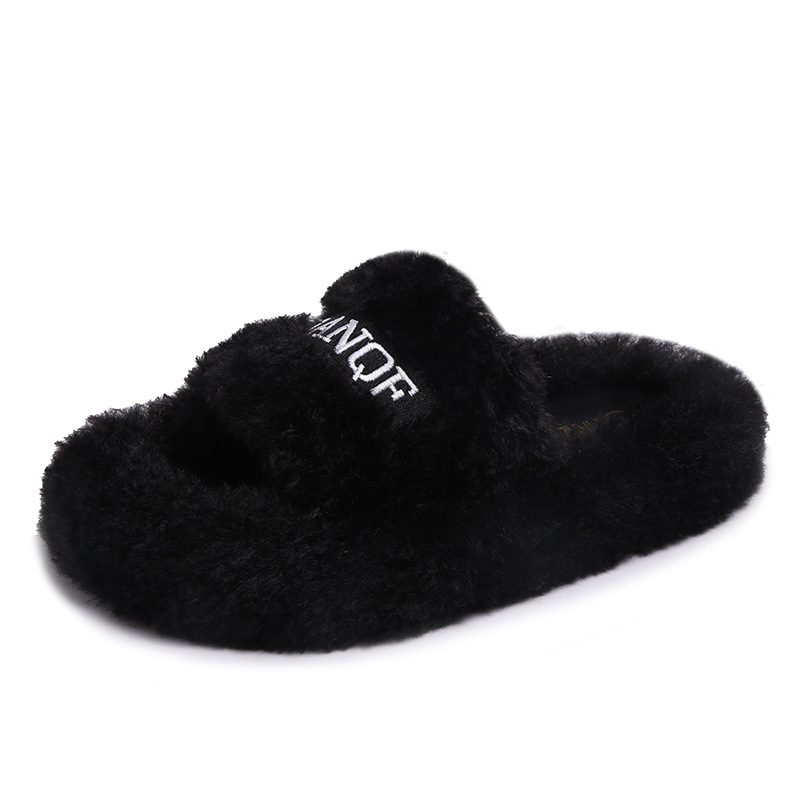 Yyvonne Plush Slippers Women Wear High-Level Spring And Autumn Leisure Home Thick Embroidery A Word Hairy Slippers