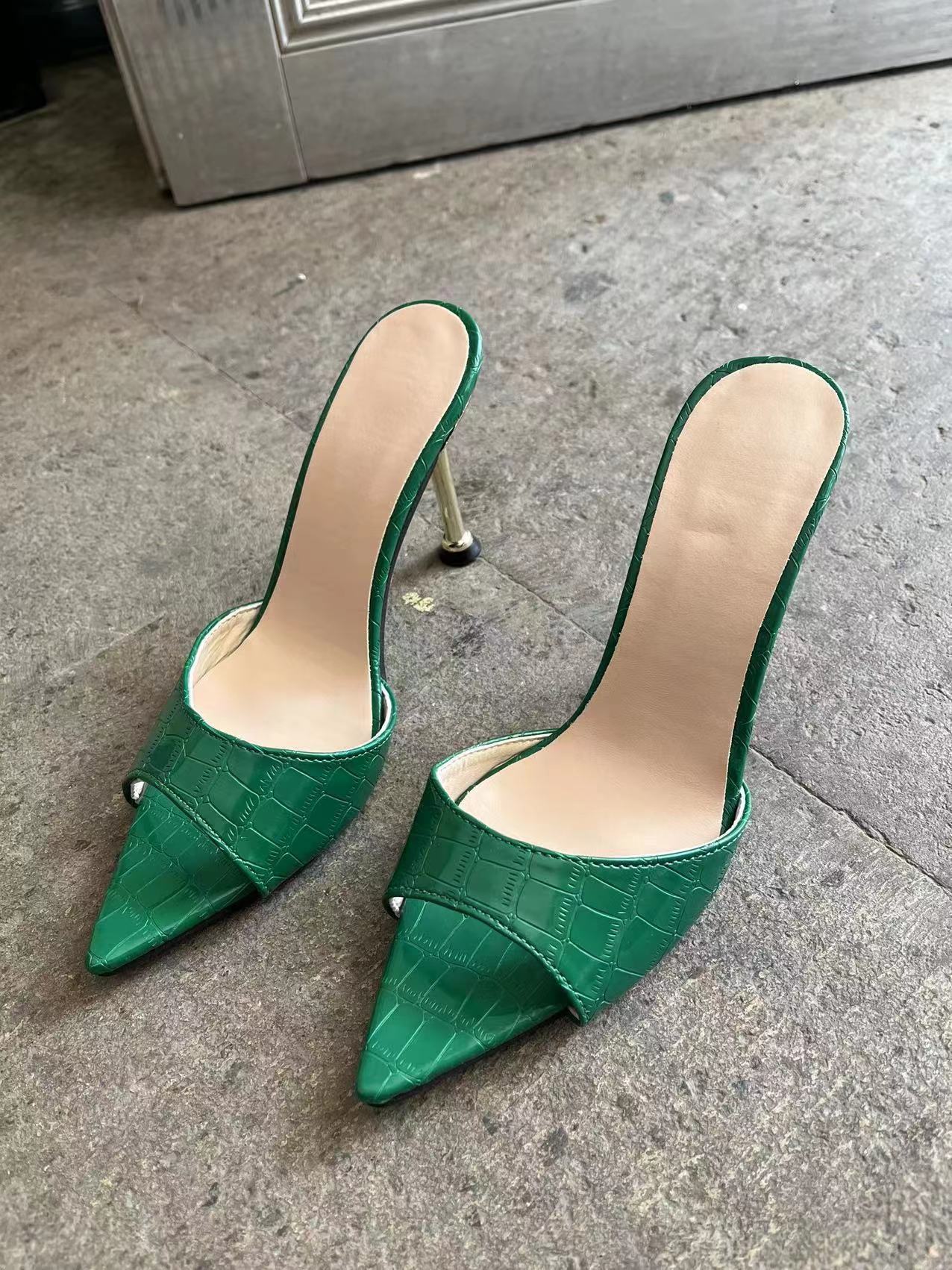 Yyvonne Pointed Cool Slippers Female High Heel Fish Mouth Fine Sandals Female Heel Shoes Female Heel Slippers