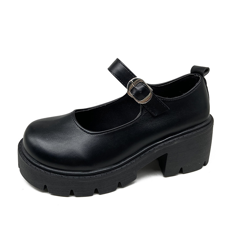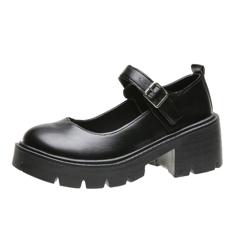 Yyvonne Red British Small Leather Shoes Women Thick-Soled Mary Treasure Shoes Buckle High Heel Single Shoes Lolita Students JK Uniform Shoes