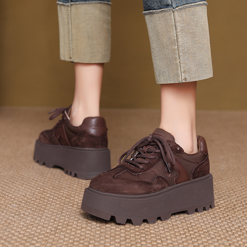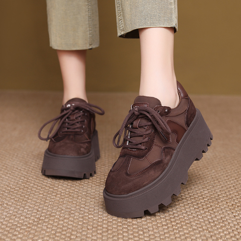 Yyvonne Retro Thick-Sedged Old Dad Shoes Autumn New Fashion Casual High-Board Shoes Women