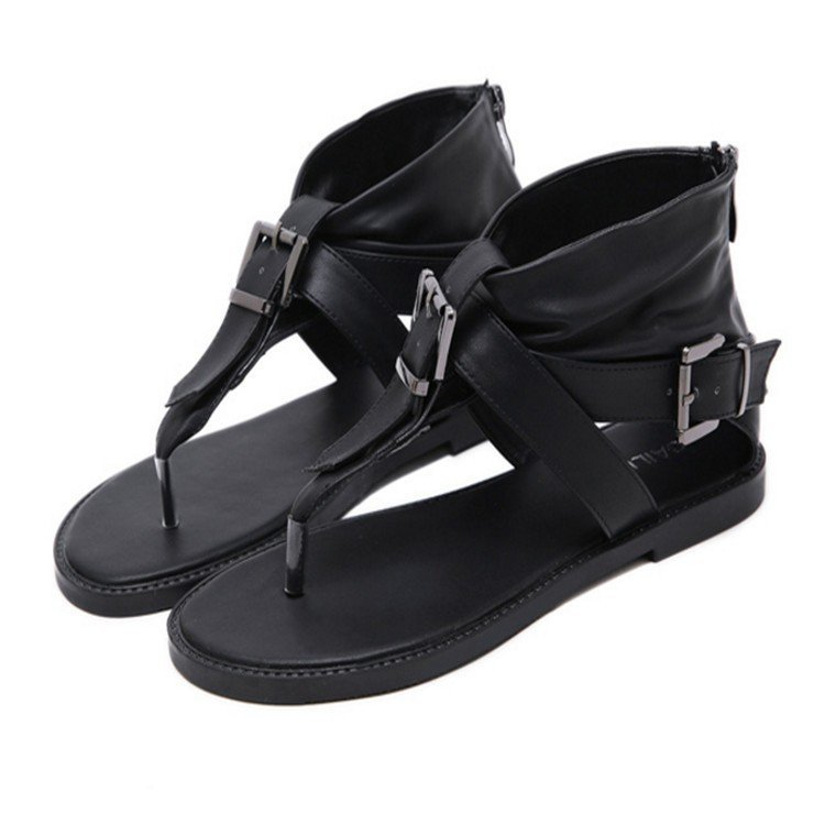 Yyvonne Shoes Summer 2025 New Retro Roman Shoes Belt Buckle Toe Flat Summer Shoes Women
