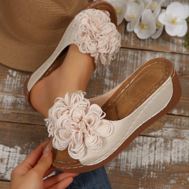 Yyvonne Slope And Beach Slippers Summer New Fish Mouth Flowers Comfortable Outdoor Beach Beach Shoes Women