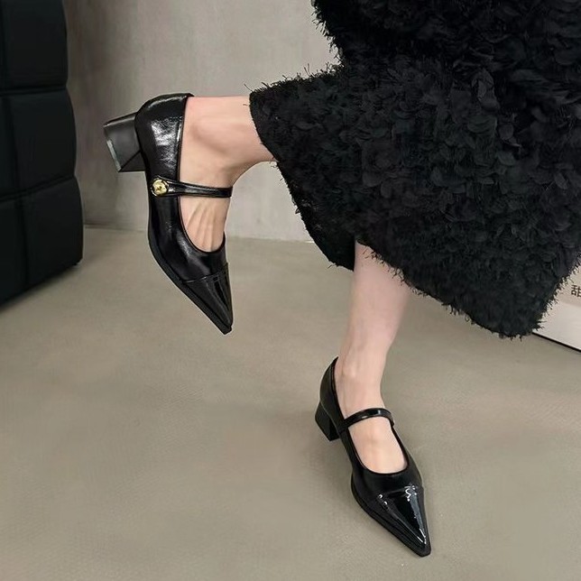 Yyvonne Small Leather Shoes Women 2025 New Spring Thick Heel Low Heel High Heels Retro French Temperament Mary Jane Single Shoes