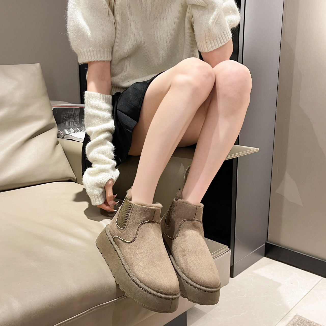 Yyvonne Snow Boots Women Winter New Anti-Slip Thick Shortbread Shoes Plus Velvet Warm Cotton Boots Ins