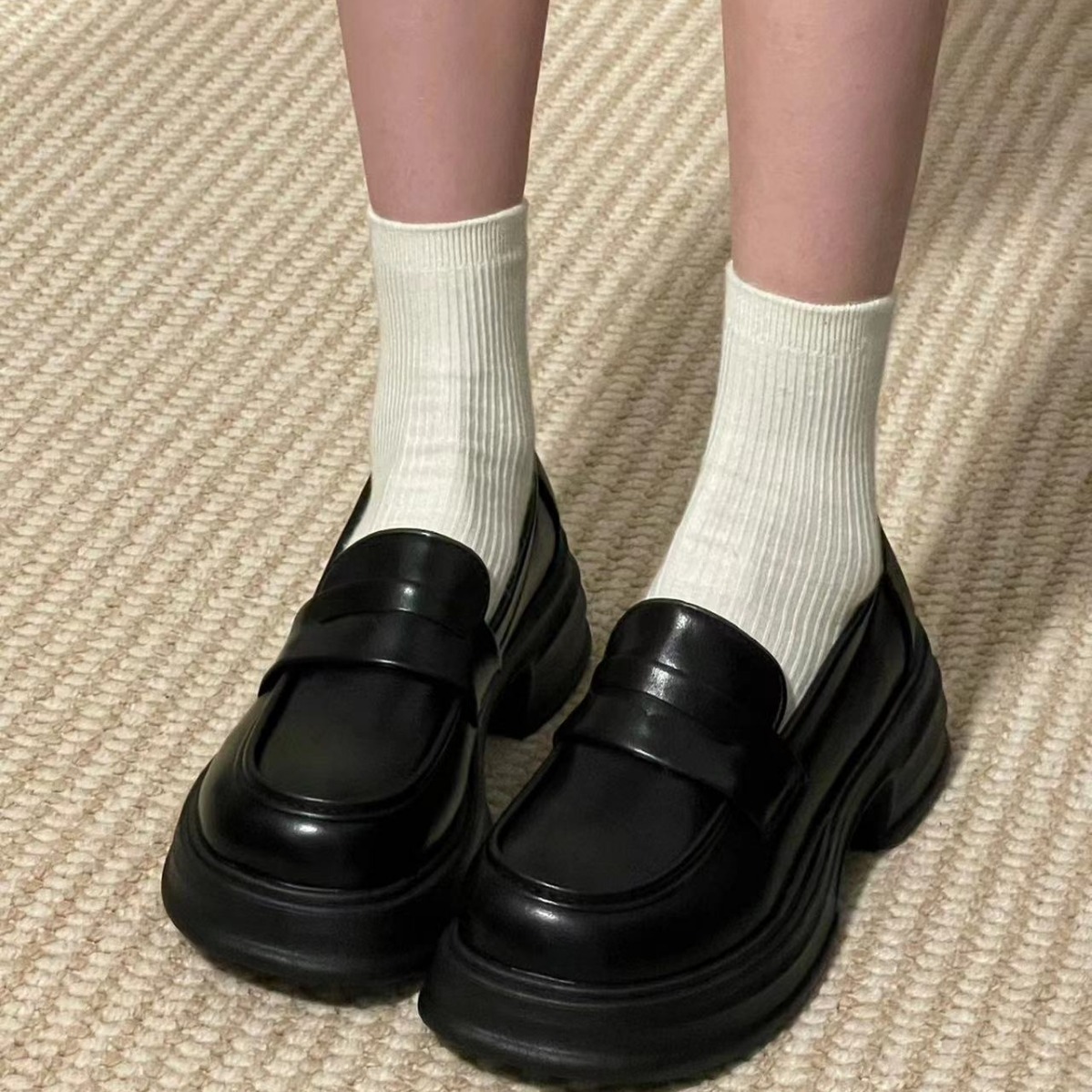 Yyvonne Soft Leather Single Shoes Women's Spring New College Style Black Leather Shoes With A British Foot Pedalle