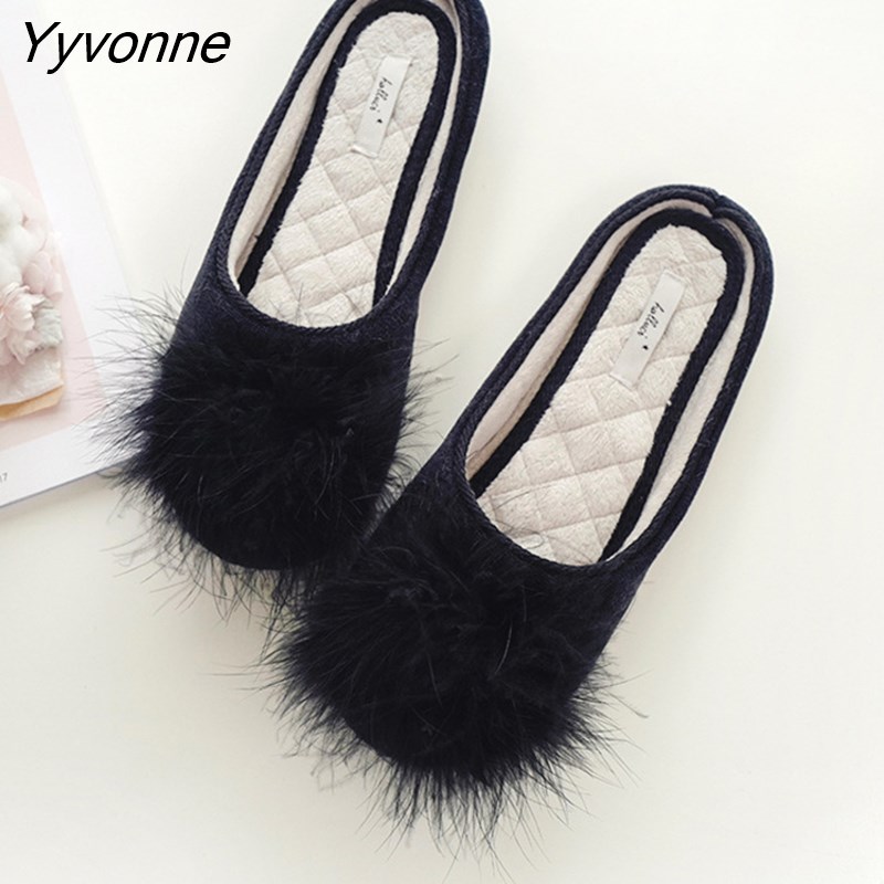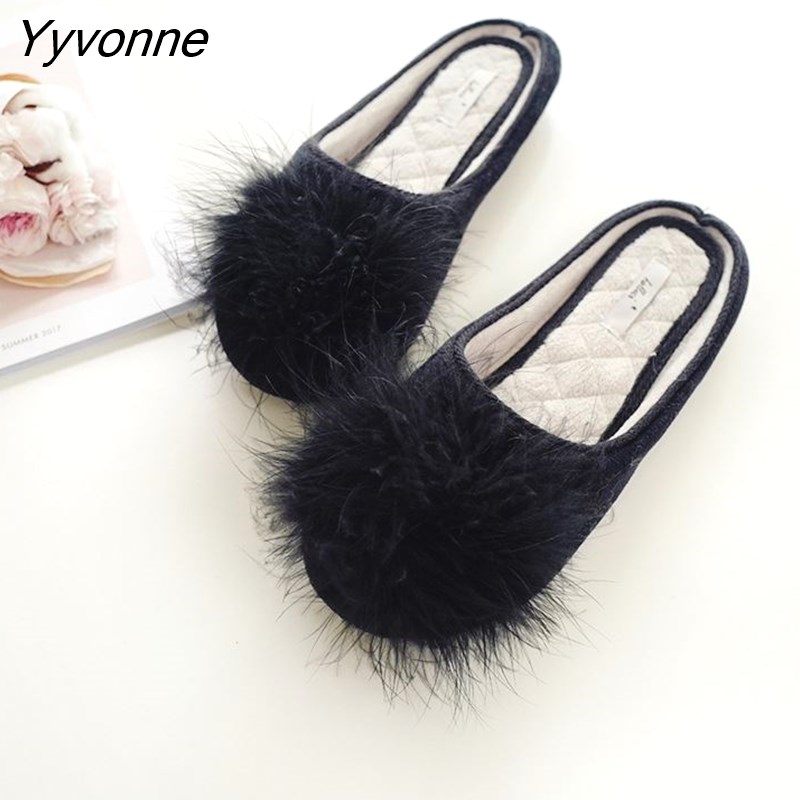 Yyvonne Soft Velvet Fur Home Slippers Shoes Women Classic Black Bedroom Non-slip Slippers indoor Floor Slippers Sapato Feminino