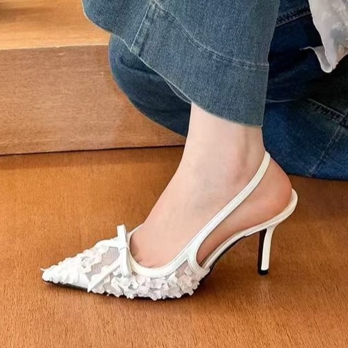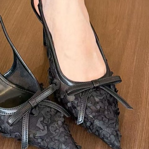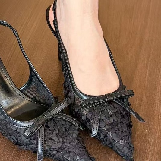 Yyvonne Spring And Summer New Lace Tip Fine Heel Bow High Heels Women's Bao Head After The Empty Sandals Shallow Mouth Single Shoes