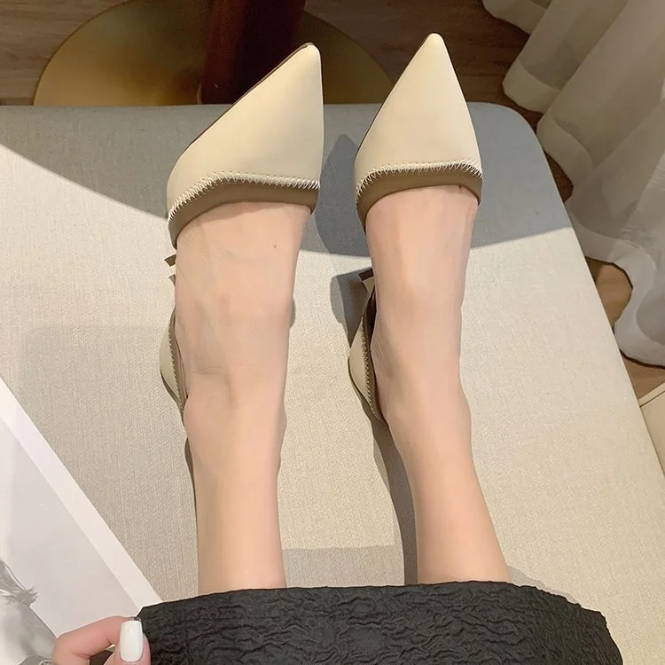 Yyvonne Spring And Summer Sharp Head Thin Heel French Temperament High Heel Single Shoes Women High Color Work Career Hollow Single Shoes