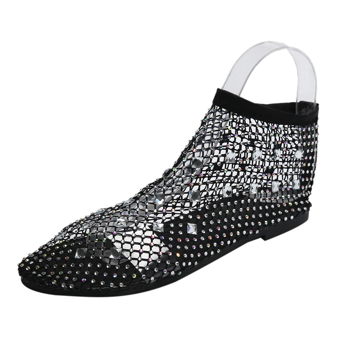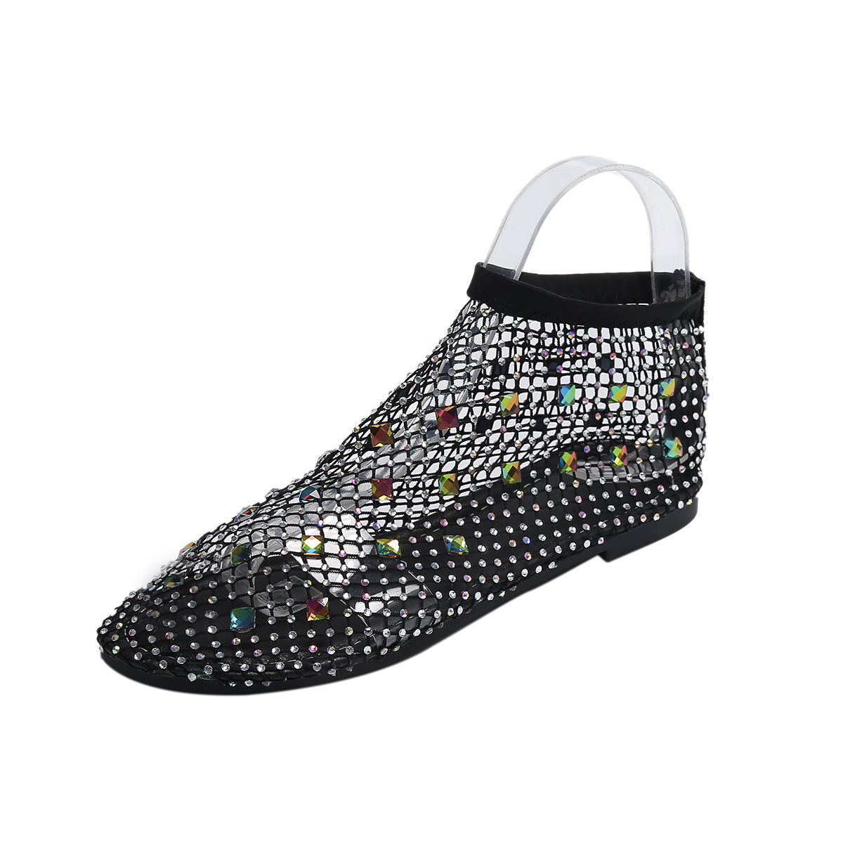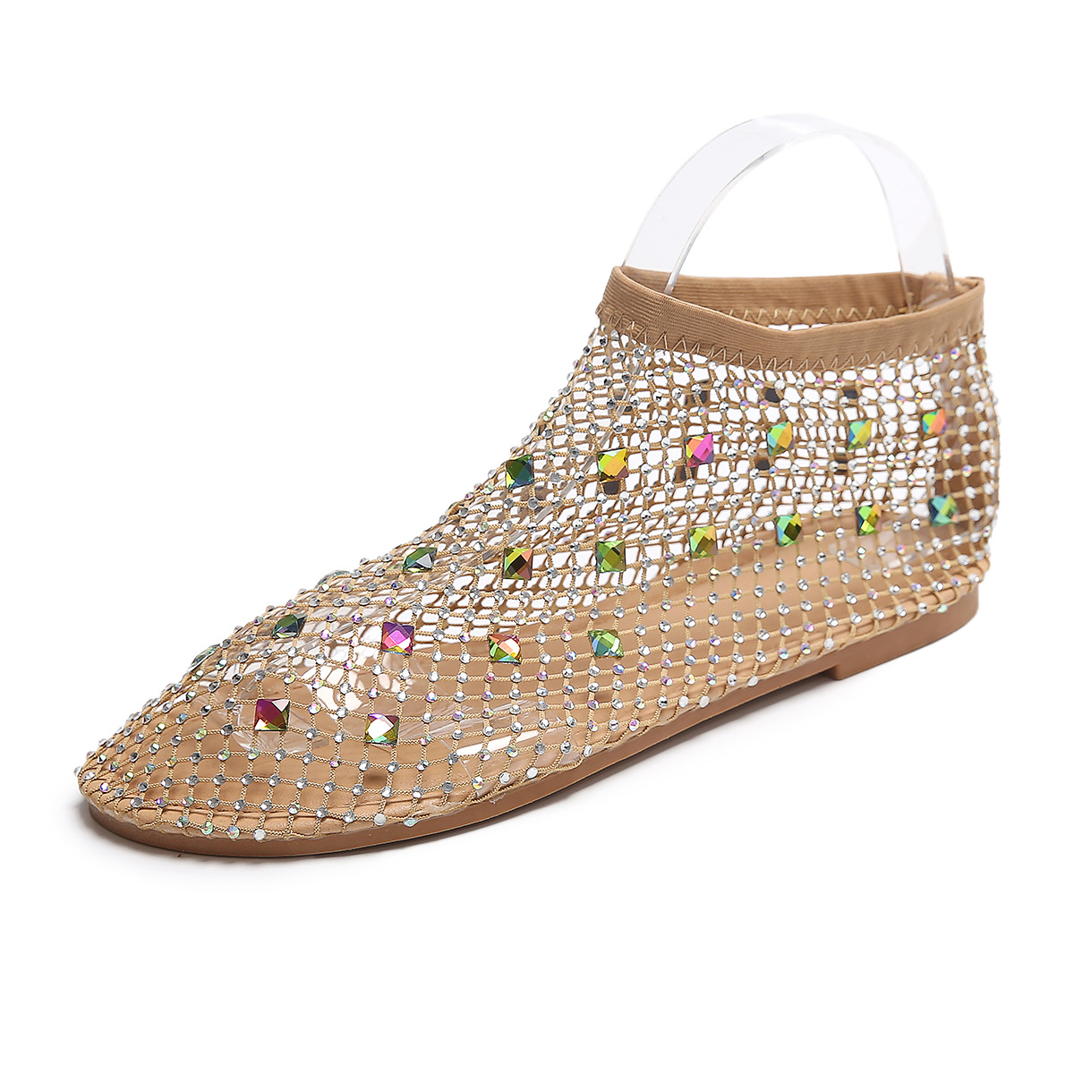 Yyvonne Summer New Color Water Drill Flat Beach Sandals Large Size Breathable Mesh Hollow Women Sandals