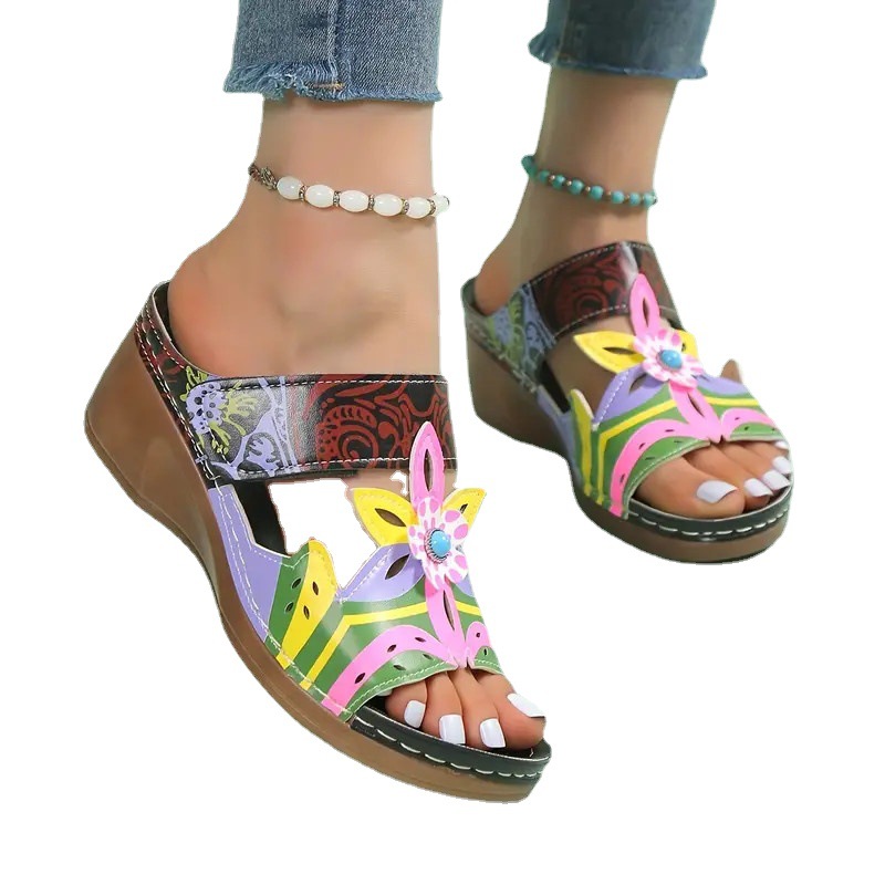 Yyvonne Summer New Large-Size Lady Slope And National Wind Sandals Light And Comfortable Women's Cool Slippers