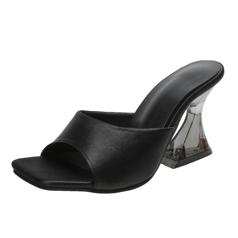 Yyvonne Summer New Transparent High-Heeled Shoes Net Red Design Square Head Sandals Fashion Korean Version Of The Temperament Cool Slippers