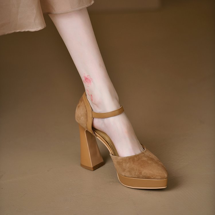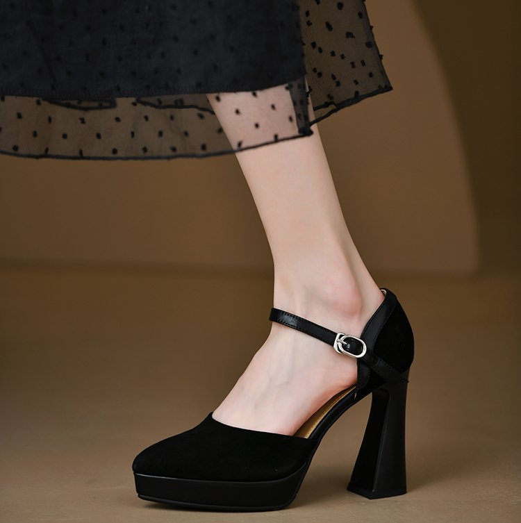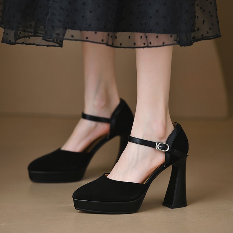 Yyvonne Temperament Coarse Velvet High-Heeled Shoes Women 2025 Spring Waterproof Table Thick Bottom Tip One By One With Shallow Mouth Empty Sandals