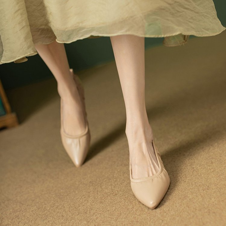 Yyvonne Temperament Pointed Low Heel Thin Heel Single Shoes Women 2025 Spring And Summer New British Style French Retro Cat Heel Single Shoes