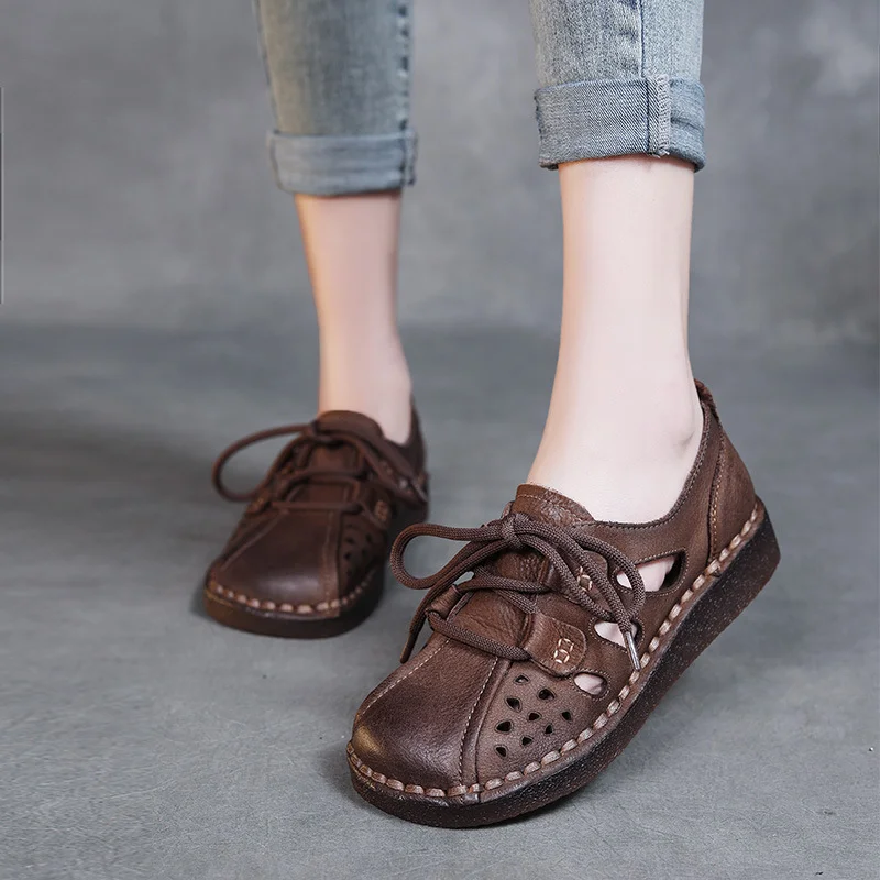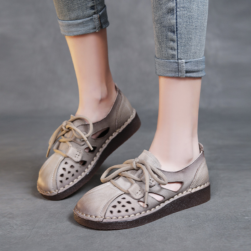 Yyvonne To 118] Niu Bago Retro Bag Head Sandals Women's Hole Shoes Casual Hollow Single Shoes Breathable Mother Shoes