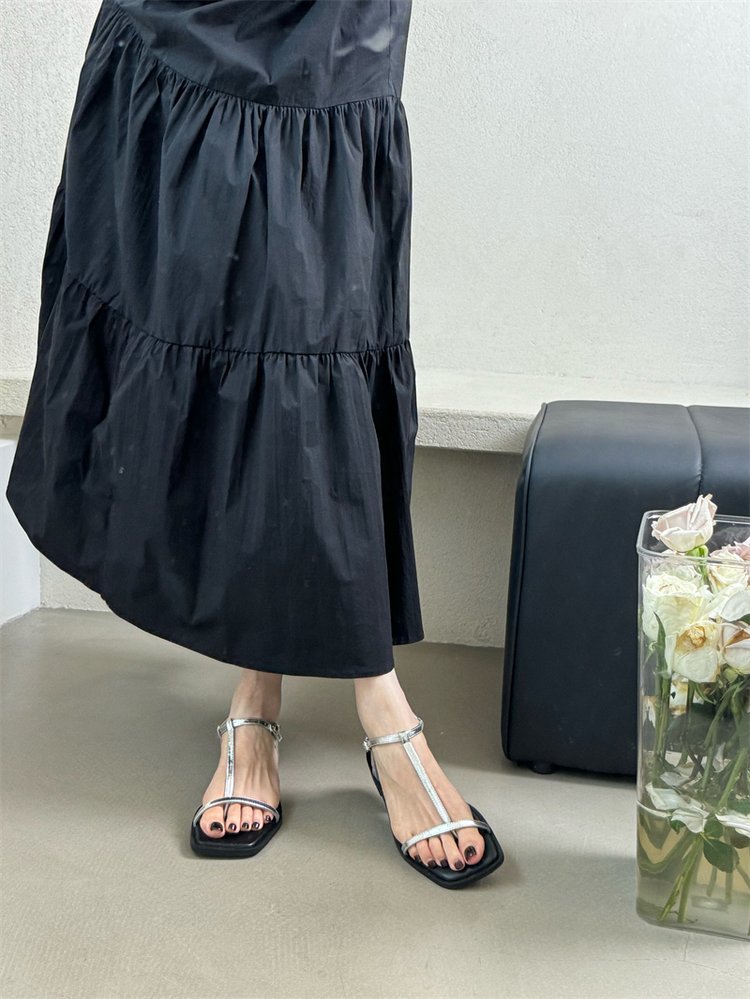 Yyvonne Toe Coarse Sandals Women's New Dew Square Head With Cross Fairy Beach Roman Shoes