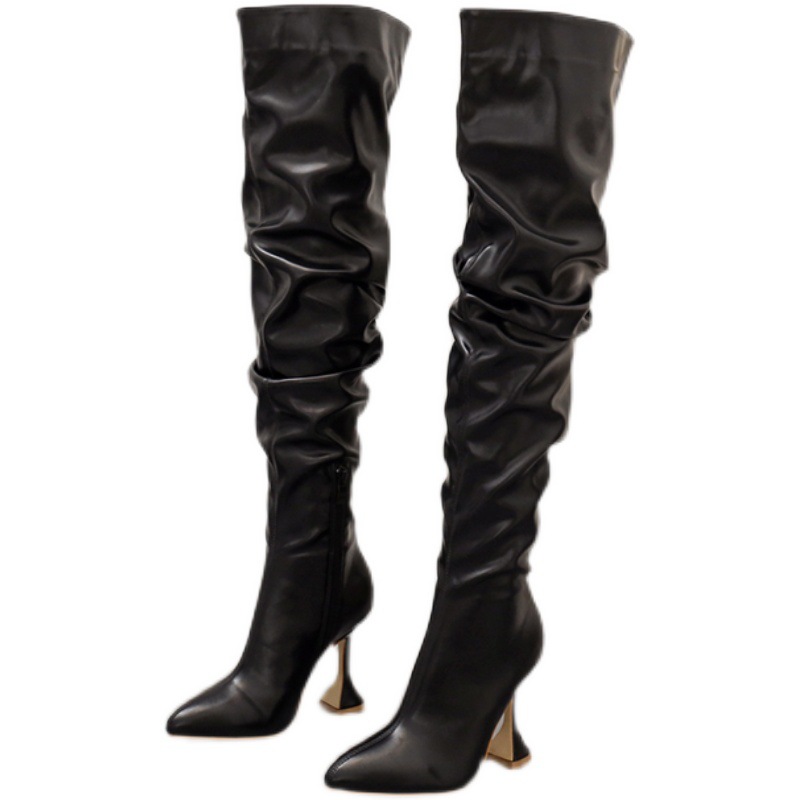 Yyvonne Winter New Long Boots Women With Pointed White High Heels And Knee Boots Leg Slim Wine Glasses And Women