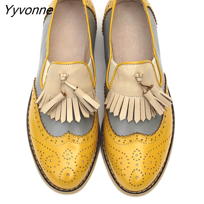 Yyvonne Women oxford Spring shoes genuine leather loafers for woman sneakers female oxfords ladies tassel single shoes 2023 summer shoes