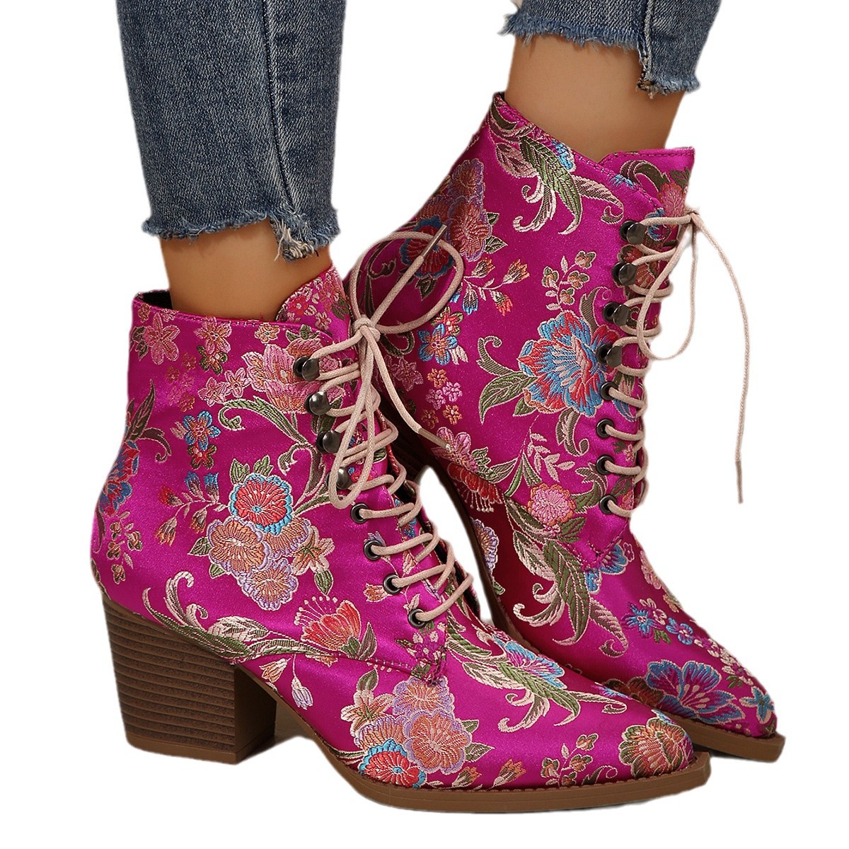 Yyvonne Women's Boots Winter New Ethnic Wind Sharp Rupeal Teling With Embroidered Martin Boots