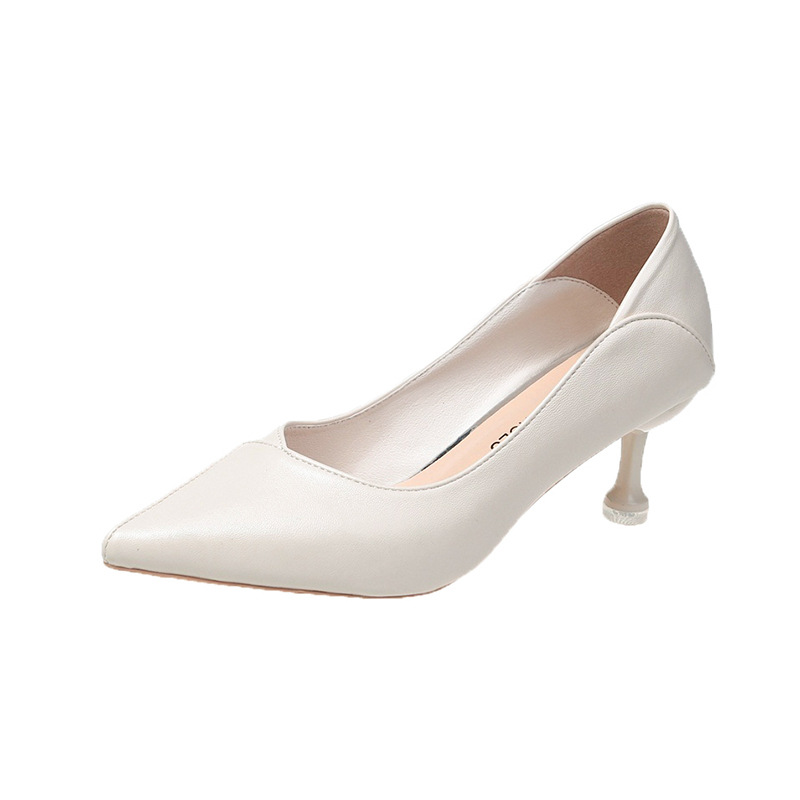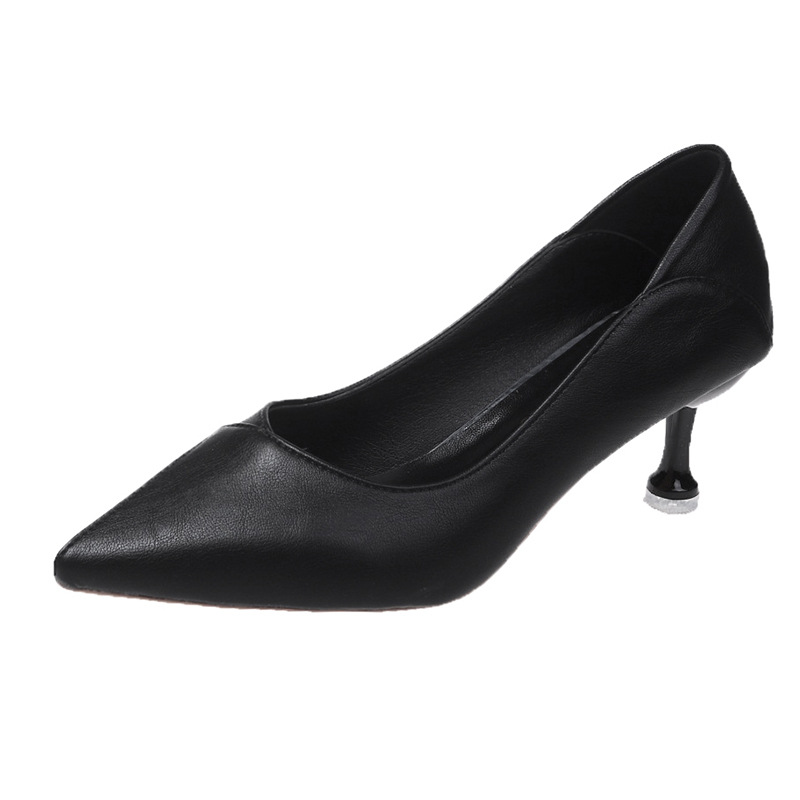 Yyvonne Women's Fine Heel 2025 Spring And Autumn New Women's Shoes Black French Pointed Single Shoes Professional Temperament Working Shoes