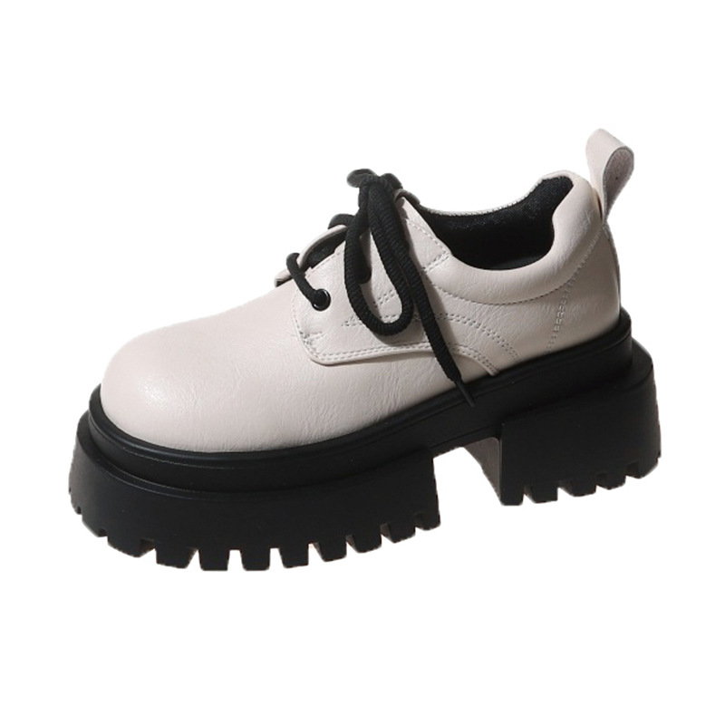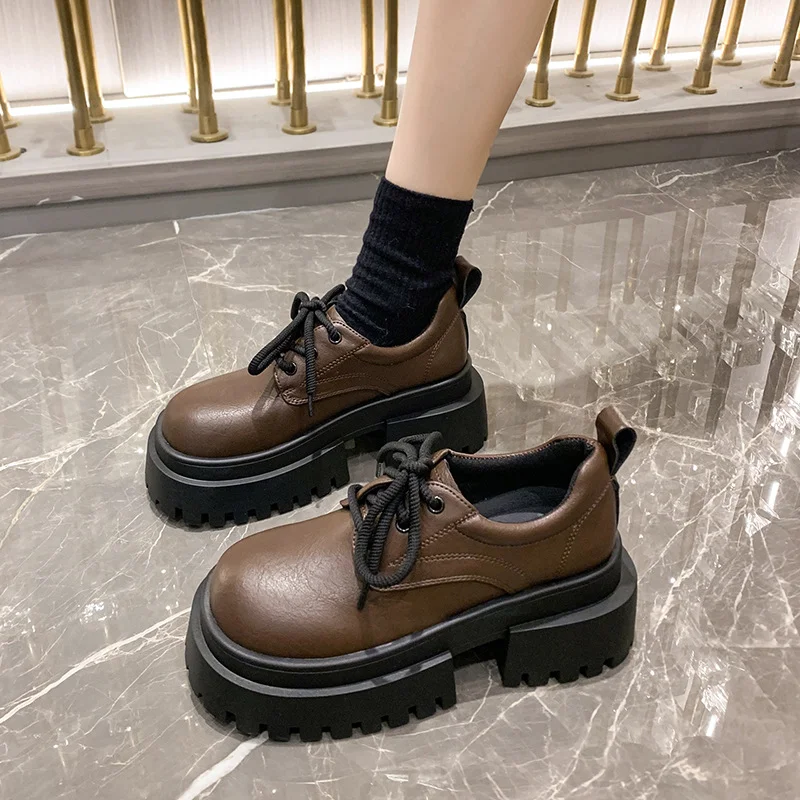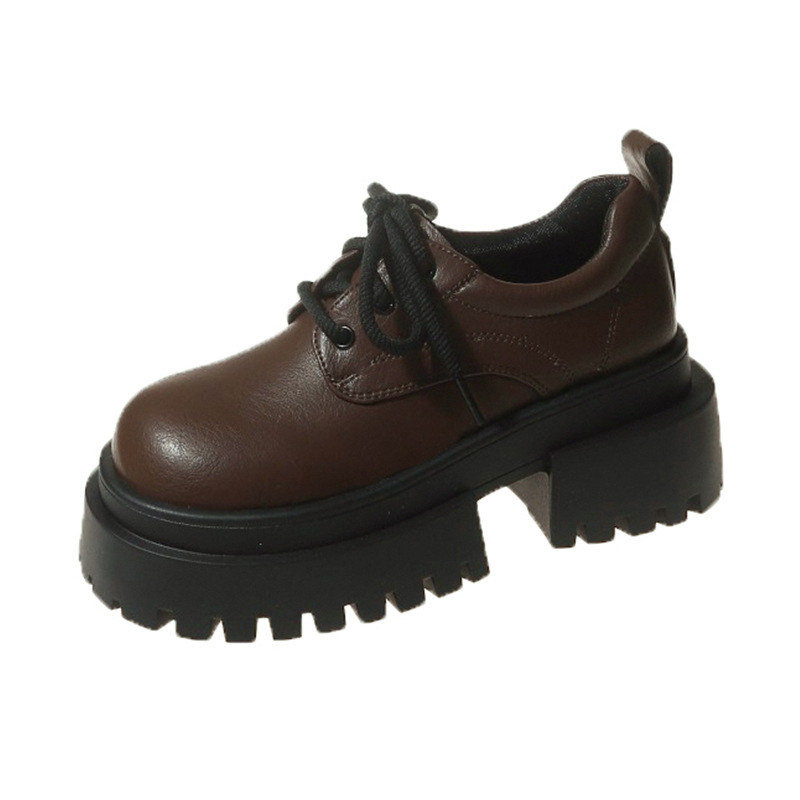 Yyvonne Women's Shoes Spring And Autumn High-End Thick-Skin Thick-Heeled Small Leather Shoes Ladies Light Mouth Retro Lace With Skirts Women's Fashion Single Shoes