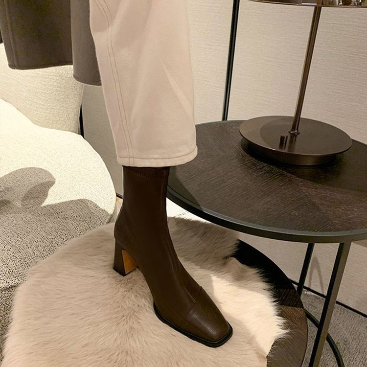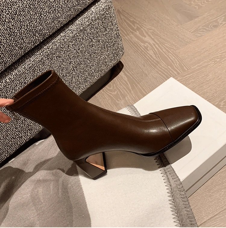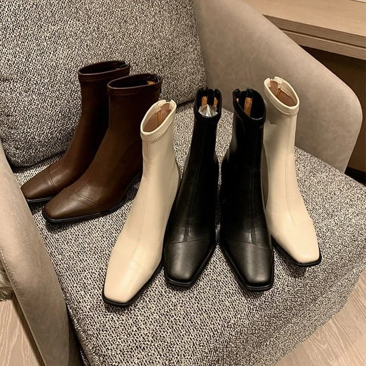 Yyvonne Women's Shoes Square Head Short Boots 2025 New Winter Korean Version Of High Heel And Thick Zipper Fashion Martin Boots