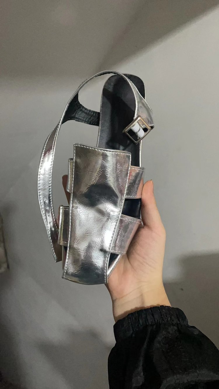 Yyvonne Women's Summer New Korean Version Of The Square Head With Coarse Heel Buckle Silver Casual Simple Ladies Sandals