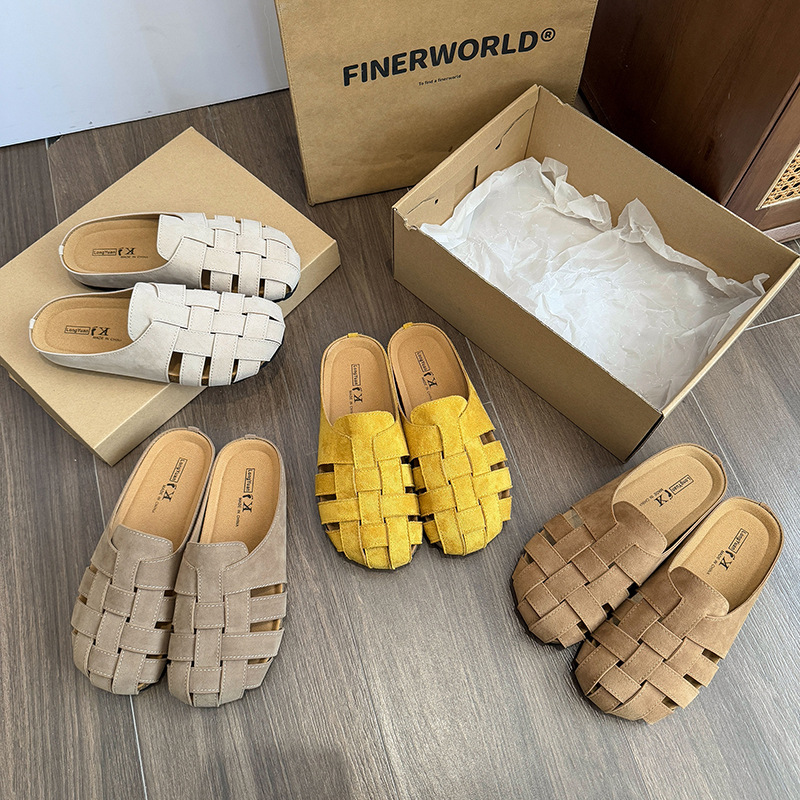 Yyvonne Woven Bun Head Half Slippers Women's Shoes Wear 2025 New Summer Pedal Soft Bottom Boaster Boofs