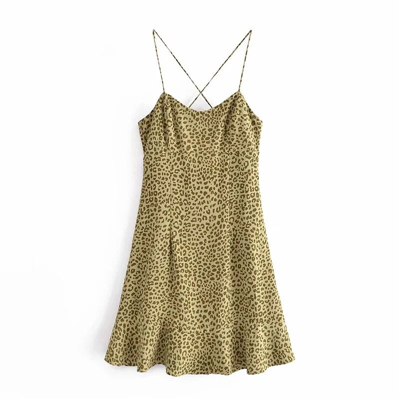 Za Women's Dresses Leopard Printed Mini Dress Spaghetti Strap Camis Vestidos Elastic Tank Camiscole High Waist Beach Femme Robes