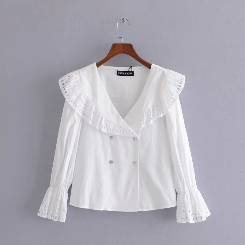 Za Women's Shirts Embroidery Blouses Pan Collar Mujer Blusas Ruffled Shirt Long Sleeves White Cute Ladies Sweet Spring 2021 trf